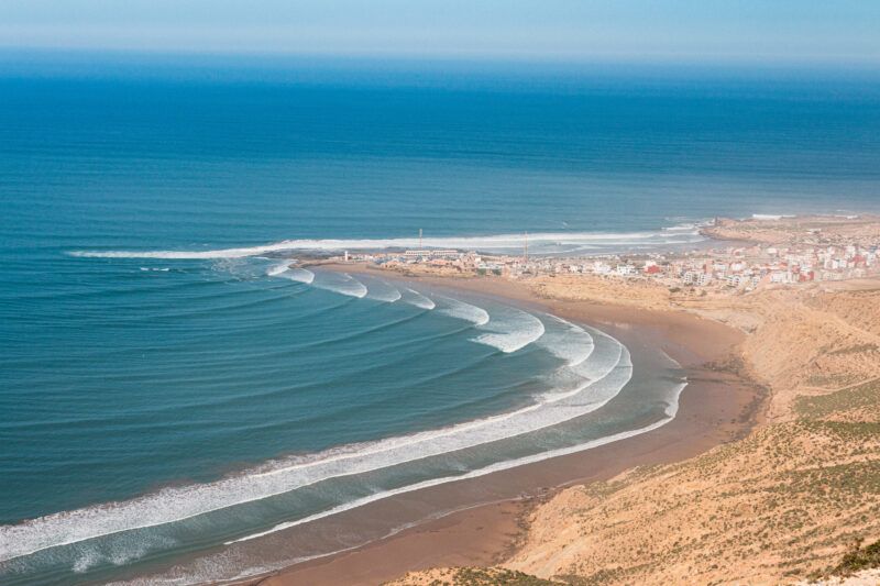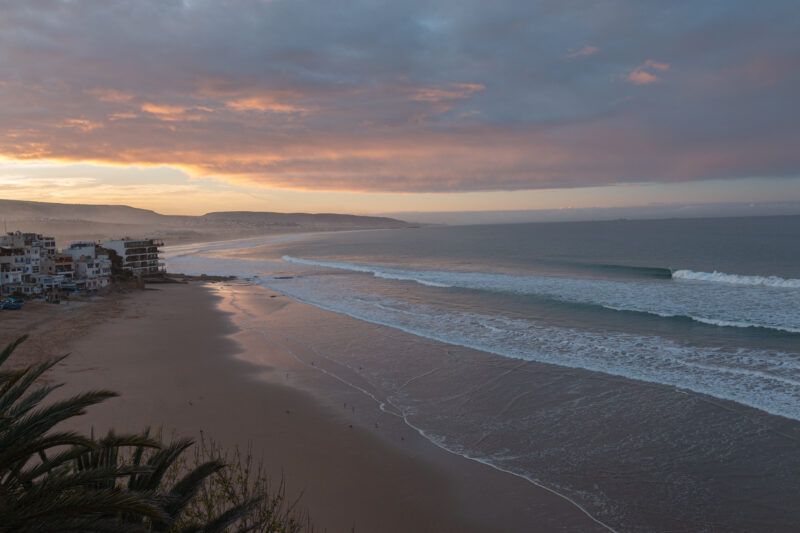 Sitting on the Strait of Gibraltar, Tangier is located at the meeting point of the Atlantic Ocean and the Mediterranean Sea, giving it a unique surf vibe. As a major city, Tangier is a key travel and cultural hub in northern Morocco. The surf here is less consistent, but on the right swells, fun waves appear along sandy beaches. Tangier also offers a ferry connection between the two countries of Morocco and Spain. Thanks to Morocco’s close proximity to Europe, travelers can easily access Tangier and other surf destinations for quick getaways. The city’s winding alleys, vibrant souks, and historic architecture create an atmosphere reminiscent of Arabian Nights, captivating visitors with its exotic allure.