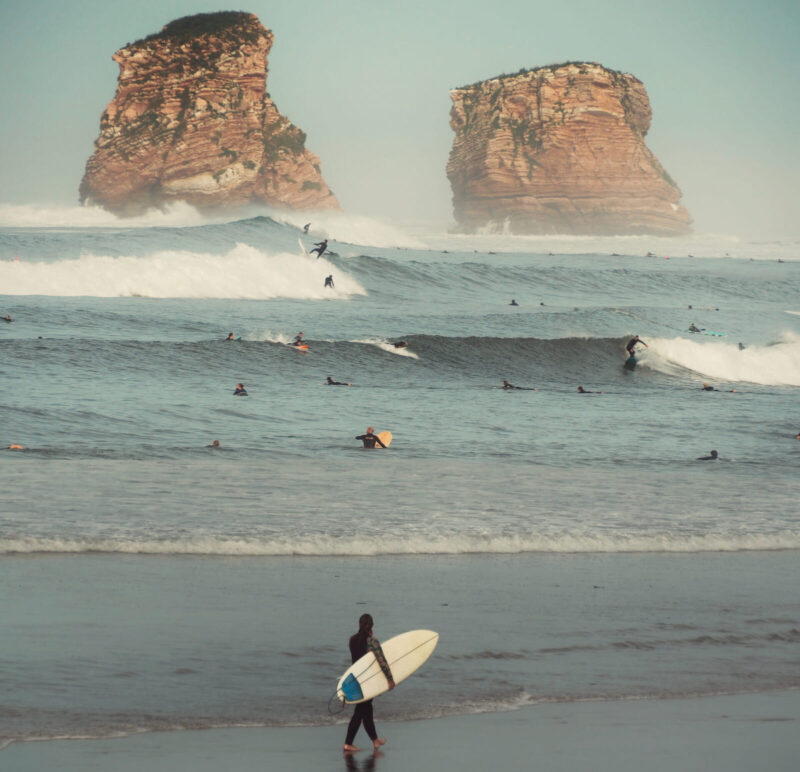 Often called the birthplace of European surfing, Biarritz has been attracting wave riders since the 1950s. The iconic Côte des Basques beach is perfect for beginners, longboarders, and anyone looking for a cruisy time. The vibe here is different from Hossegor—more elegant, more family-friendly, but still deeply surf-oriented.