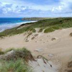 Located in Western Cornwall, Penhale is a fun and long stretch of beach break that offers up some decent waves for turns and hacks. The waves here are pretty straightforward to surf and break for up to 50 meters over a sand bottom. Check Penhale Corner to the north at lower tides and bigger swell for a peeling right-hander off of Ligger Point.