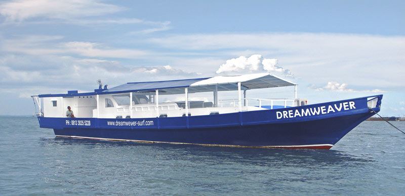 With over 10 years experience in surf charters, Dreamweaver offers affordable quality. She sleeps up to 14 guests comfortably in large bunk style beds. There is a large covered open air dining area, a large rooftop deck ideal for kicking back with a beer under the stars a fully air conditioned lounge and sleeping area below deck. The entire boat also has complimentary WiFi.